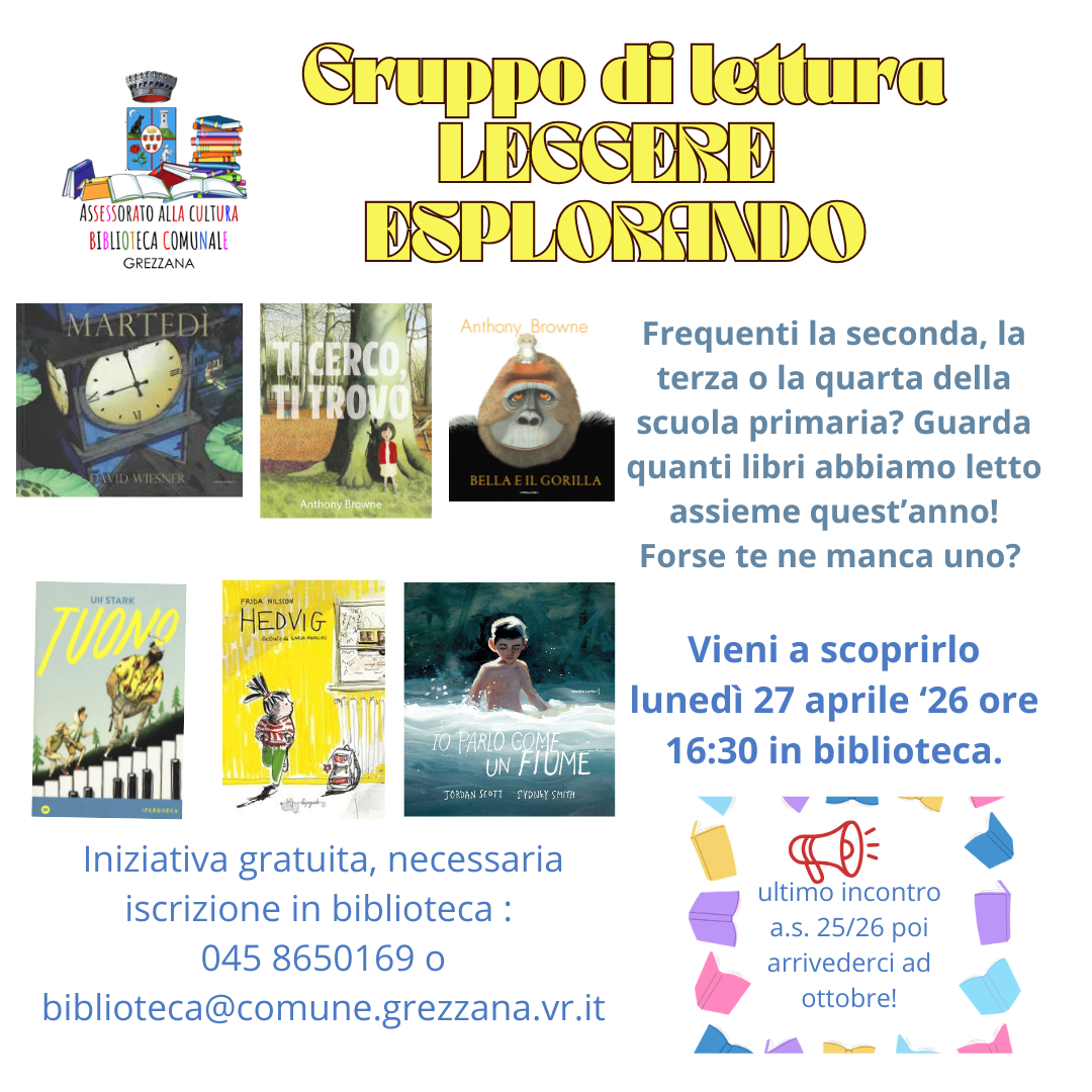 Le lettrici della biblioteca aspettano in biblioteca tutti i bambini/e dai 7 ai 9 anni ogni ultimo lunedì del mese dalle 16:30 alle 17:30 per leggere assieme e condividere idee a partire da quanto letto.