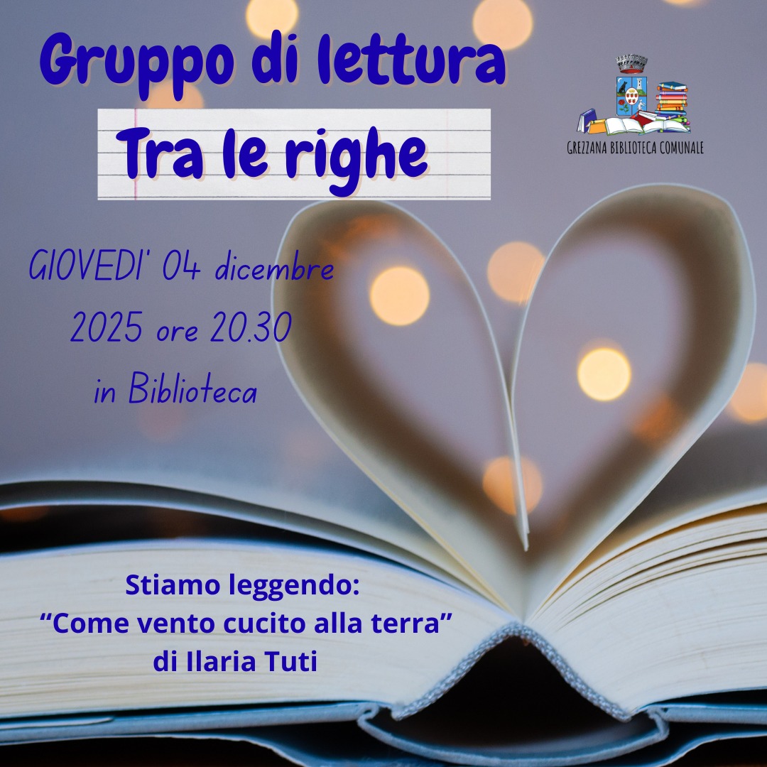 Il gruppo di Lettura Tra le righe si incontra giovedì 04 dicembre ore 20:30 per confrontarsi a partire dalla lettura del libro Come vento cucito alla terra di Ilaria Tuti.