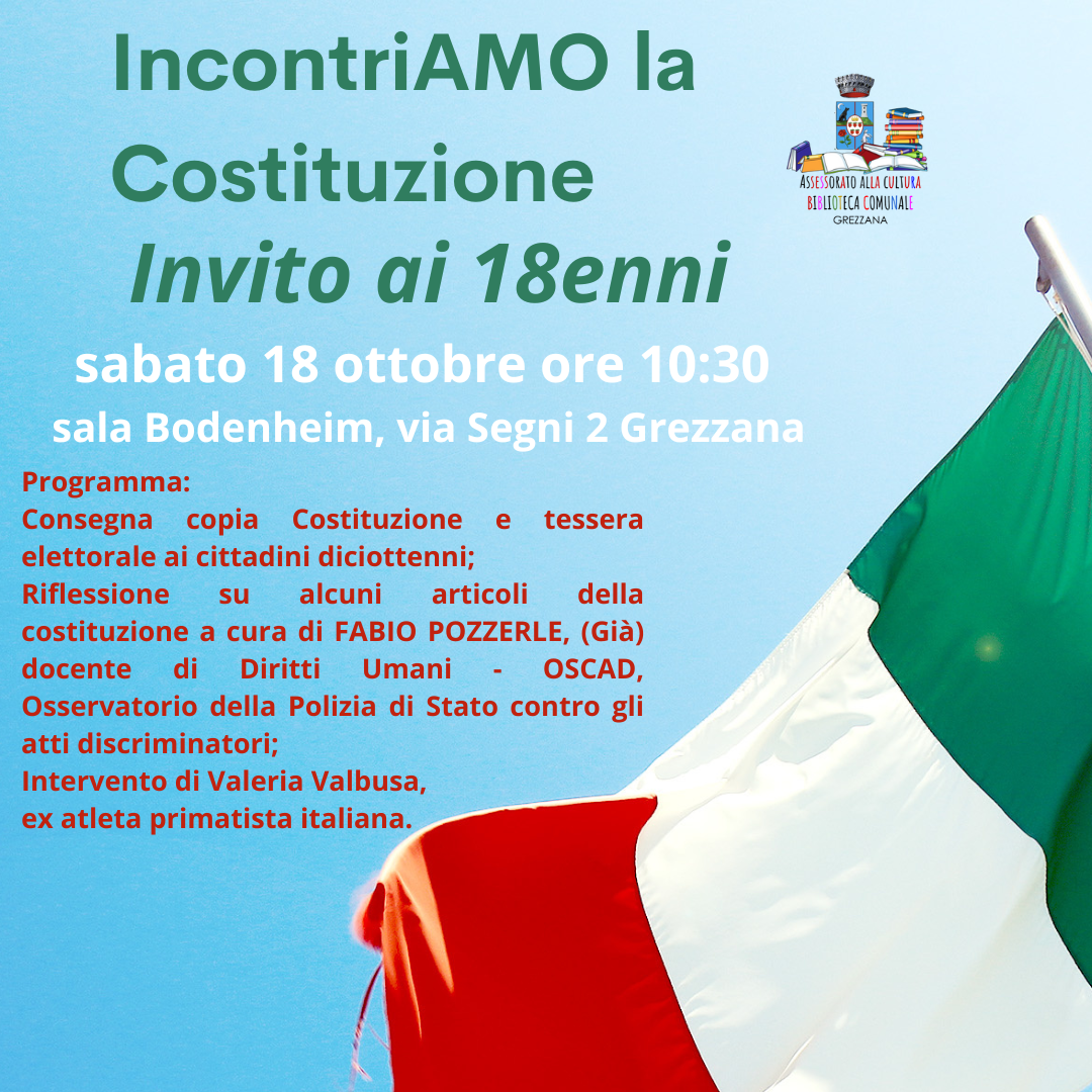 Consegna copia Costituzione e tessera elettorale ai cittadini diciottenni;